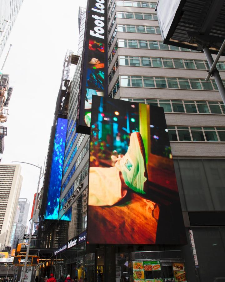 The campaign is shown at Foot Lockers world-wide including at the Times Square location. How much of the final output informs the conception of the campaign?