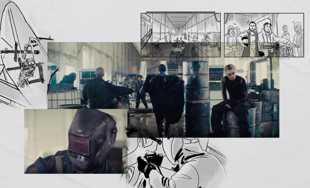 Crafting a landscape rich with Rebel Moon set pieces, enemy Imperium cargo, and Rebel firearms, our all star production team seamlessly integrated the world of the Bloodaxes into a few key practical set environments. Here, Devra and Darrian Bloodaxe, portrayed by Tokischa and Tainy, were depicted being pursued by enemy Imperium drones, brought to life by our VFX partners, Actual Objects.