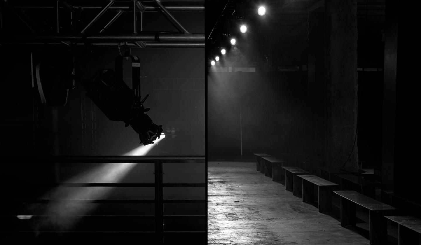 Part One is inspired by the contours of cathedrals. The set carves out a holy space within the detritus of a Wall Street monument, accompanied by a backdrop of orchestral sounds. This evokes a sense of both decay and renewal, capturing the delicate balance between tradition and modernity. Dramatic lighting highlights the space's architectural features, casting long shadows and creating a play of light and dark.