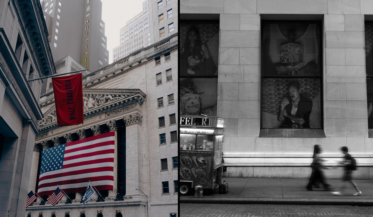 MATTE unveiled Willy Chavarria’s SS25 collection, titled “América”, in a show located at the historic home of J.P. Morgan. This now-neglected monument stares directly at the New York Stock Exchange Building, offering both an iconic backdrop and a powerful socio-political commentary that mirrors the themes of Chavarria’s largest show to date – a show that centers around those “[laboring] in the fields, bringing food to our tables, building our cities, making our music, and weaving stories into the fabric of this land.”